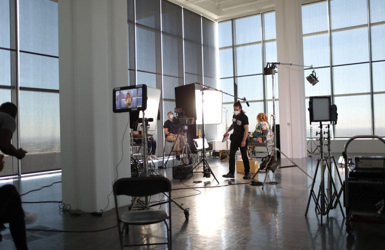 - Full production crew with cinema cameras, lighting, grip, and pro audio.