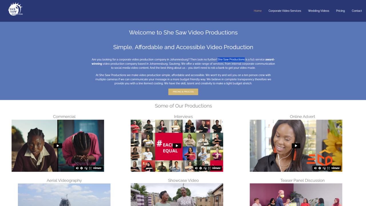 She Saw Productions has created videos for Goethe Institut, Deloitte, Gauteng Partnership Fund, and Cultural Economies Platform.