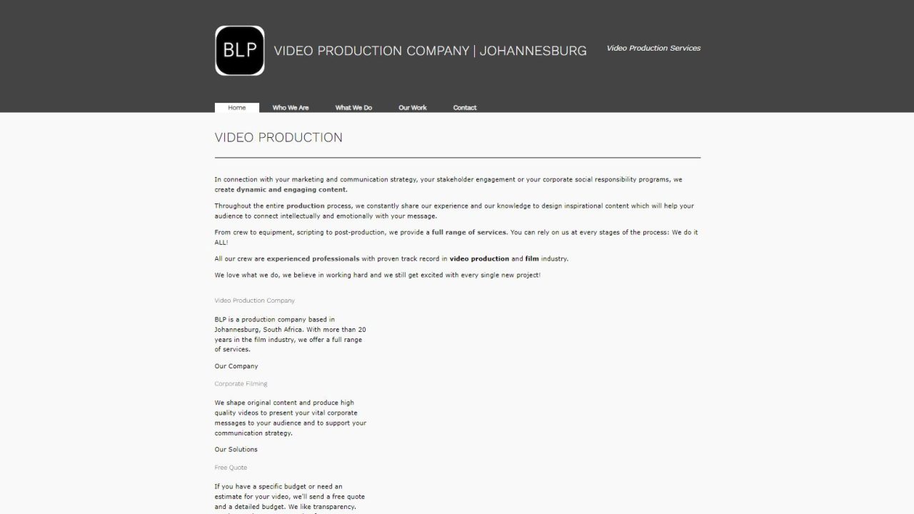 This video production team is extremely impressive. BLP Corporate is based in Johannesburg. They know exactly how to communicate your message to your targeted audience. From crew to equipment, scripting to editing, BLP Corporate has a wide range of services. Their expert team has a proven track record in this competitive industry. Their work is absolutely worth considering for your latest project!